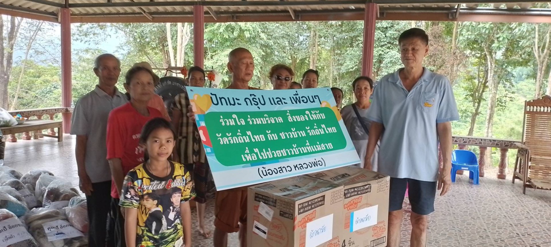 "ปัทมะ กรุ๊ป และ เพื่อนๆ ร่วมใจ ร่วมบริจาค สิ่งของให้กับวัดรักถิ่นไทย กับชาวบ้านรักถิ่นไทย เพื่อไปช่วยผู้ประสบอุทกภัยที่แม่สาย "โดยมี พระอาจารย์เบนและชาวบ้านในการรับมอบครั้งนี้