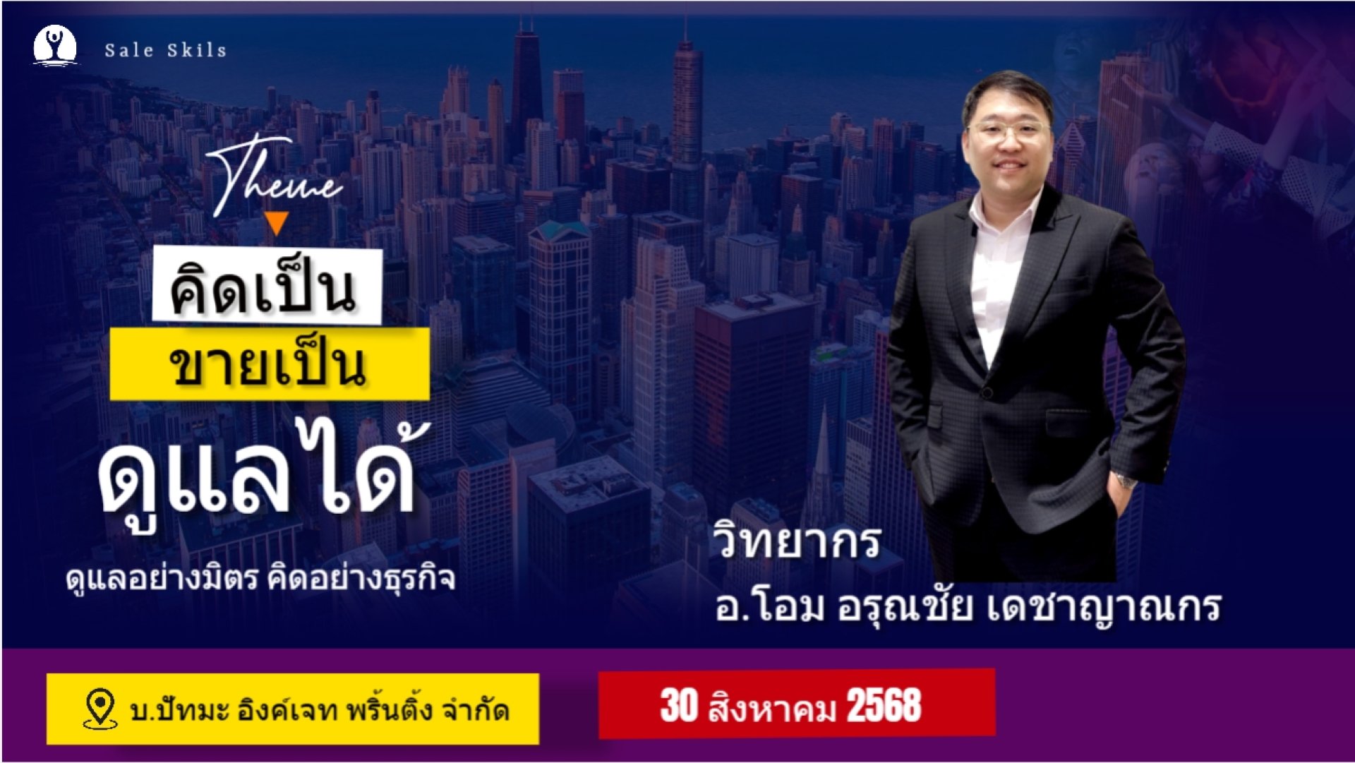 ปัทมะ กรุ๊ป และบริษัทในเครือ โดยคุณปัทมา นธิโรจน์ ผู้บริหาร และพนักงานทุกท่าน ได้จัดอบรมหัวข้อคิดเป็นขายเป็น ดูแลอย่างมิตร คิดอย่างธุรกิจ เมื่อวันเสาร์ที่ 30 สิงหาคม 2568 เวลา 9.00-12.00 น.